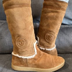 Authentic Chanel shearling suede tall boots in brown with embossed CC logo. Made in Italy$395Pembroke Pines, FL
