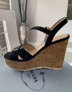Prada Calzature Donna Vernice Nero Wedge Sandals$270Miami, FL