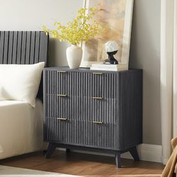 New-T4TREAM Fluted 3 Drawer Dresser, 32" Tall Modern Chest of Drawers, Curved Profile Design, Wood Drawer Organizer for Bedroom, Living Room, Hallway,$120Oakland Park, FL