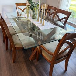 Modern Glass and Chrome Dining Room Table with Wooden Base 6 person expandable to 10 seating$600Miami, FL