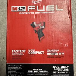 Milwaukee M12 FUEL 12V Lithium-Ion Brushless Cordless 1/4 in. Hex Impact Driver (Tool-Only)$90Hialeah, FL