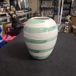 Topferhof Keramik Handarbeit (Handmade) Pottery Vase, White W/Celedon Stripes Glazed Finish, Made In Germany Signed On Bottom $25Fort Lauderdale, FL