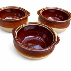 Set of 3 Vintage French Onion Soup Crocks - Tri-Tone Brown & Beige Stoneware$25Halndle Bch, FL