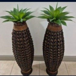 *** NEW LOW PRICE *** Hand Woven Bamboo Floor Vases w Faux Agave Head Pieces @ Lasting Creations$65Oakland Park, FL