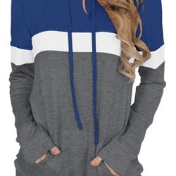 Women's Long Sleeve Color Block Hoodies Tops Lightweight Casual Drawstring Pullover Sweatshirt with Pocket Small Blue$25Hialeah Gardens, FL