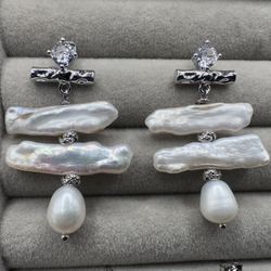 Baroque Long Pearl & Teardrop Wedding Layered Biwa Earrings. Resort Vacation Jewelry$39Sunny Isles Beach, FL
