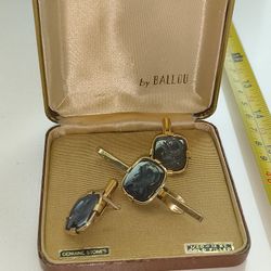 Vintage Goldtone Mesh Cufflinks And Tie Clip Featuring A Red Cabochon Stone$75Miami, FL