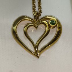 Vintage Avon gold-tone double heart pendant necklace with a floating green gemstone$20Biscayne Park, FL