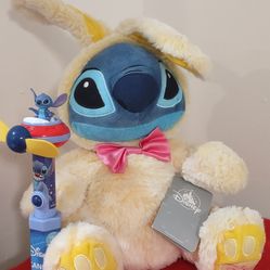 Disney Store Stitch (LILO) 2021 Yellow 10" Easter Bunny Soft Plush Toy pink bow plus Disney Stitch Candy Fan.$25Miami, FL