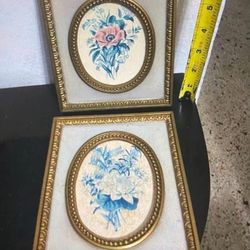 PAREJA DE CUADROS ANTIGUO DE MADERA Y PINTURA DE FLORES$25Miami, FL