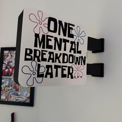 Letrero de Pared "One Mental Breakdown Later" | Decoración de Oficina Divertida | Regalo para Estudiantes y Trabajo | Estilo Bob Esponja Meme$30Fort Lauderdale, FL