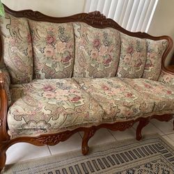 Vintage Elegant French Provincial Carved Mahogany & Italian Tapestry Parlor Sofa / Couch$850Miami, FL