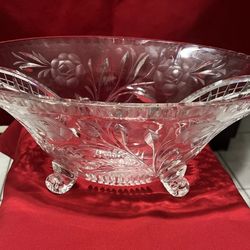 Cut Crystal Roses footed Bowl Dish w scalloped rim American Brilliant$15Miami, FL