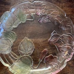 Vintage Mikasa Platter Floral Design Pink Green Etched Glass 14”$10Miami, FL