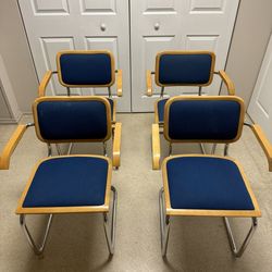 Loewenstein Oggo Chrome Wood Blue Fabric Dining Chairs Set Of 4 Lowenstein Vintage MCM$250Oakland Park, FL