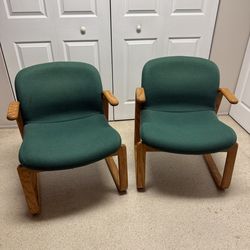 Kimball Furniture 530 Vintage Oak Pair 2 Armchairs Green Fabric 1970s Upholstered Arm Chairs$200Oakland Park, FL