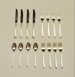 Antique Vintage Sterling Silver 925 Table Place Setting for 4 Oneida Damask Rose Silverware Flatware Gold Silver Platinum Bullion 16 Pieces 001$1,300Fort Lauderdale, FL