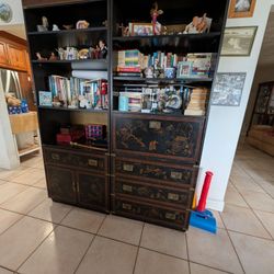 1970s Chinoiserie Drexel Black and Brass Bookshelves a Pair$800Miami, FL