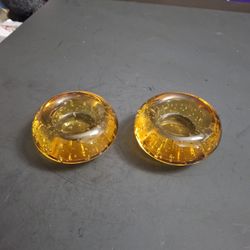 Heavy Art Glass Bullicante "Controlled Bubbles" Hand Blown Amber Gold Or Honey Gold Votive/Tealight Holders Set Of 2 3 3/8" X 1 7/8"H$15Fort Lauderdale, FL
