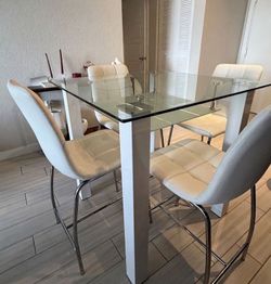 Glass Top Bar Height Dining Set - 4 White Stools$650Miami, FL