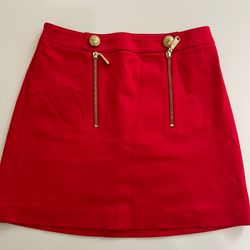 Express Red Mini Skirt with Gold Zipper & Lion Button Detail - Size 2$25North Miami Beach, FL