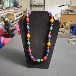 Retro Costume Jewelry Colorful Beaded 23" Necklace W/Acrylic Red, Yellow, Green, Blue & Purple Beads W/Brass Spacers, Boho Style Vintage 70's & 80's$5Fort Lauderdale, FL
