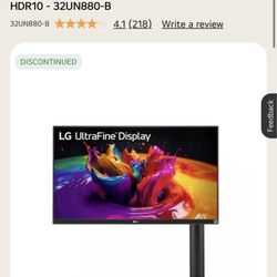 LG UltraFine Ergo 32” 4K Monitor (32UN880-B) – HDR10 – Adjustable Arm$400Hollywood, FL