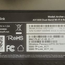 TP-LINK® Archer AX1800 Wi-Fi 6 Dual-Band Wireless Router$40Miami, FL