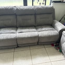 Grey loveseat and couch . Reclining with cup holders .$900Homestead, FL