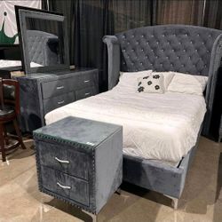 Bedroom Set 4 pcs new grey velvet set 😍 bed dresser mirror nightstand$799Miami Gardens, FL