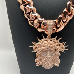 👑Premium Quality👑 20mm - 24inch Rose Gold Plated Miami Cuban Link & Jesus Thorn Crown Pendant Charm 2 Piece$270North Lauderdale, FL