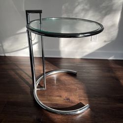 Iconic Mid-Century Modern Eileen Gray E1027 Style Adjustable Chrome & Glass Side Table$185Miami, FL