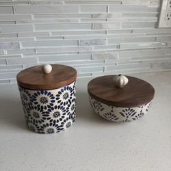 Decorative Ceramic Storage Containers Set – Blue & White with Wooden Lids$15Miami, FL