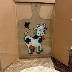 A stylish, tempered glass cutting board featuring a charming cow and cowbell design.$15Miami, FL