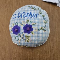 Round Blue Gingham Round Throw Pillow "Mother"$20Boca Raton, FL