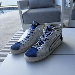Golden Goose Slide Sneakers Size 44 White Blue High Top $600 Retail$260Boca Raton, FL