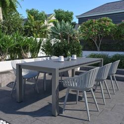 BRAND NEW 7 Piece Aluminum Gray and Gray Resin Dining Set | Ideal Furniture Set For Outdoor