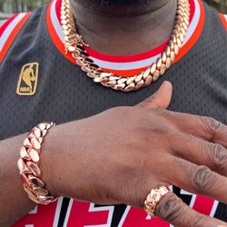 20mm Miami Cuban Link Rose Gold Plated Chain & Bracelet Set$350Pompano Beach, FL