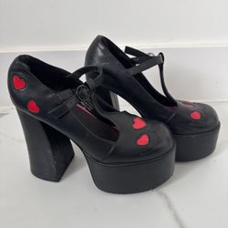 Black Platform Heels With Red Hearts (Size 8)$40Miami, FL