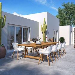 Brand New 9 Pieces Rectangular Extendable Dining Set 100% FSC Certified Teak Finish Wood, Ideal Furniture Set For Outdoor And indoors