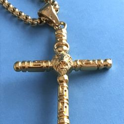Menβs Gold on Stainless Steel Detailed Cross Pendant On Box Chain *Pickup Boca Raton $59Boca Raton, FL