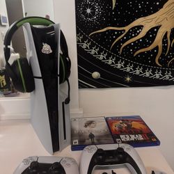 PS5 Slim 1TB Bundle + 2 Controllers + Games + Headset + Backbone – Like New$450Miami, FL