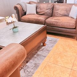 Beautiful Brown Leather Sofa Set with available Wooden Coffee Table$250Pompano Beach, FL