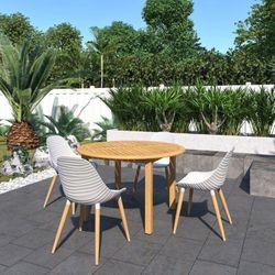 *BRAND NEW* 5 Piece Round Patio Dining Set - Outdoor Table And Chair Furniture - Teak Finish & Recycled Plastic White