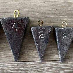 Lot of 4 Fishing Sinkers 4 oz Triangle Bank Weights Lead Sinkers$10Halndle Bch, FL