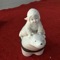 Vtg Dept 56 SNOWBABIES "POLAR EXPRESS" Trinket Box Baby riding on bear - bisque$20Miami, FL