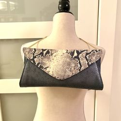 GYRA vintage style leather handbag with snake print, designed with a distinctive triangular flap and optional chain strap.$30Miami, FL