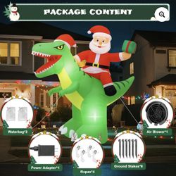 8FT Christmas Inflatable Dinosaur with Santa Claus, Built-in LED Lights, Blow Up Holiday Yard Lawn Outdoor Decorations$60Miami, FL