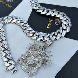 20mm Miami Cuban Link Silver White Gold Plated Necklace Jesus Pendant Charm $170Pompano Beach, FL