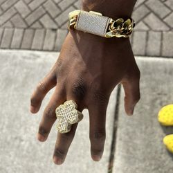 20mm Miami Cuban Link Gold Diamond Lock Bracelet & Cross Ring $139Pompano Beach, FL